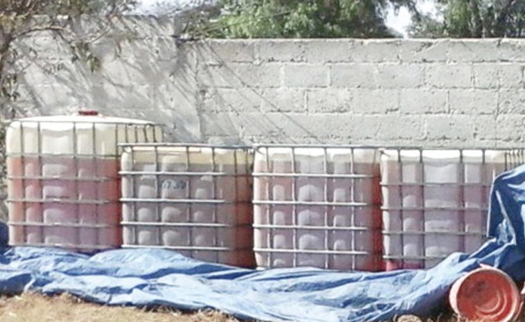 En el interior del inmueble, las autoridades encontraron bidones de mil litros de gasolina, además de un camión con una cisterna metálica hecha de forma artesanal donde también se almacenaba hidrocarburo.