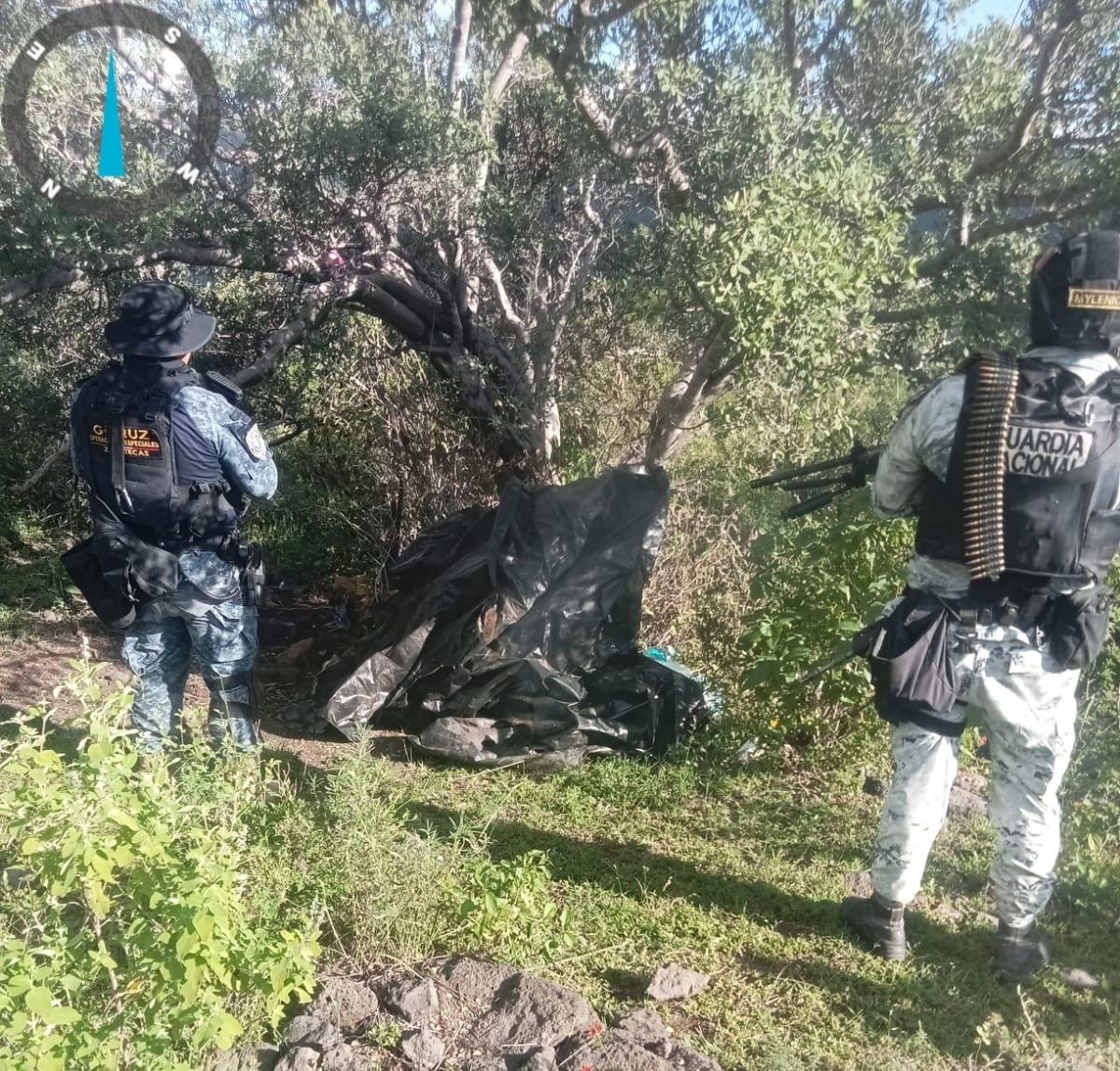 El hallazgo fue resultado de los patrullajes de la Fuerza de Reacción Inmediata Zacatecas (FRIZ), el Grupo de Operaciones Rurales (GORUZ), Ejército Mexicano y Guardia Nacional, quienes detectaron el punto de operación criminal.