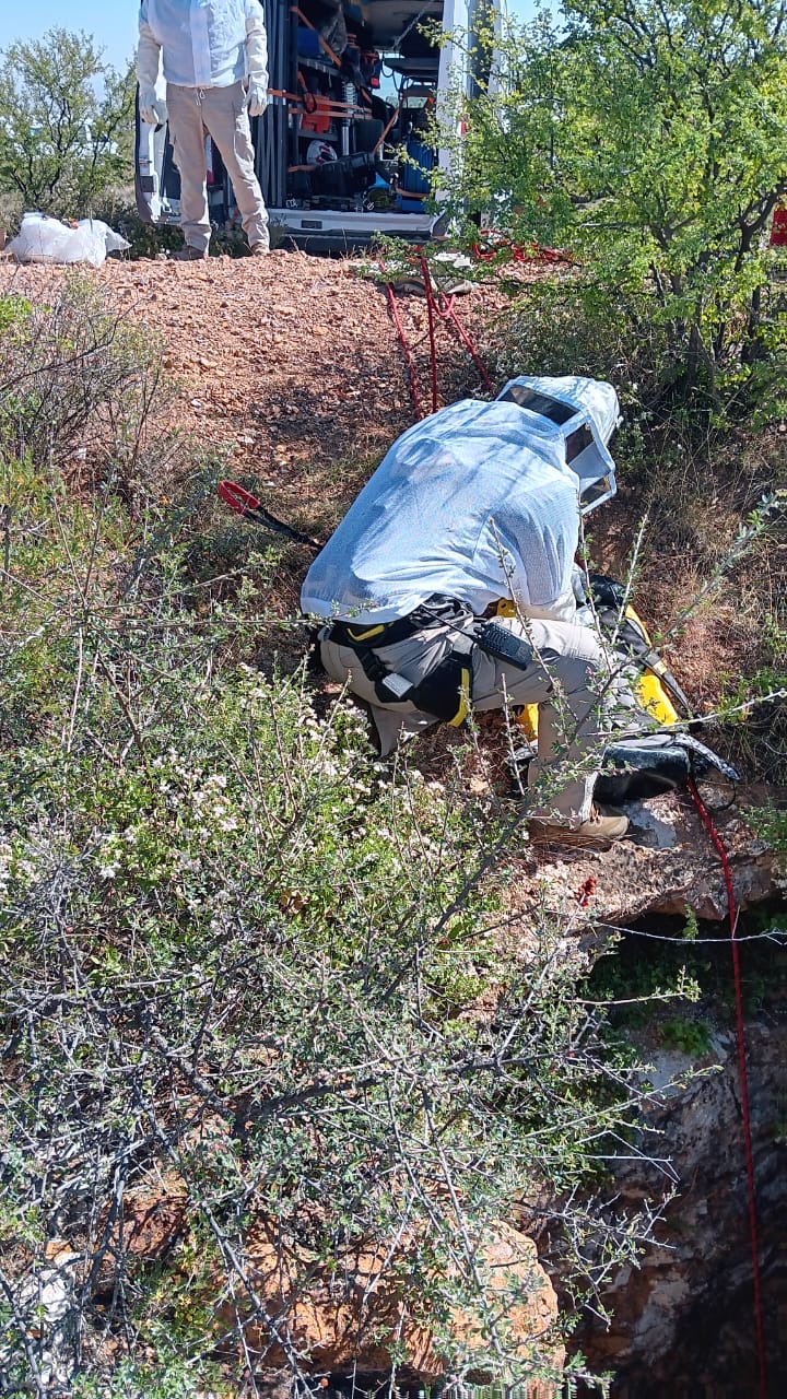 Durante la búsqueda en Guadalupe, los equipos inspeccionaron distintos polígonos de terreno con apoyo de drones y personal de Protección Civil, que descendió a barrancos y tiros de mina mediante técnicas de rapel, en un operativo que se extendió por varias horas.