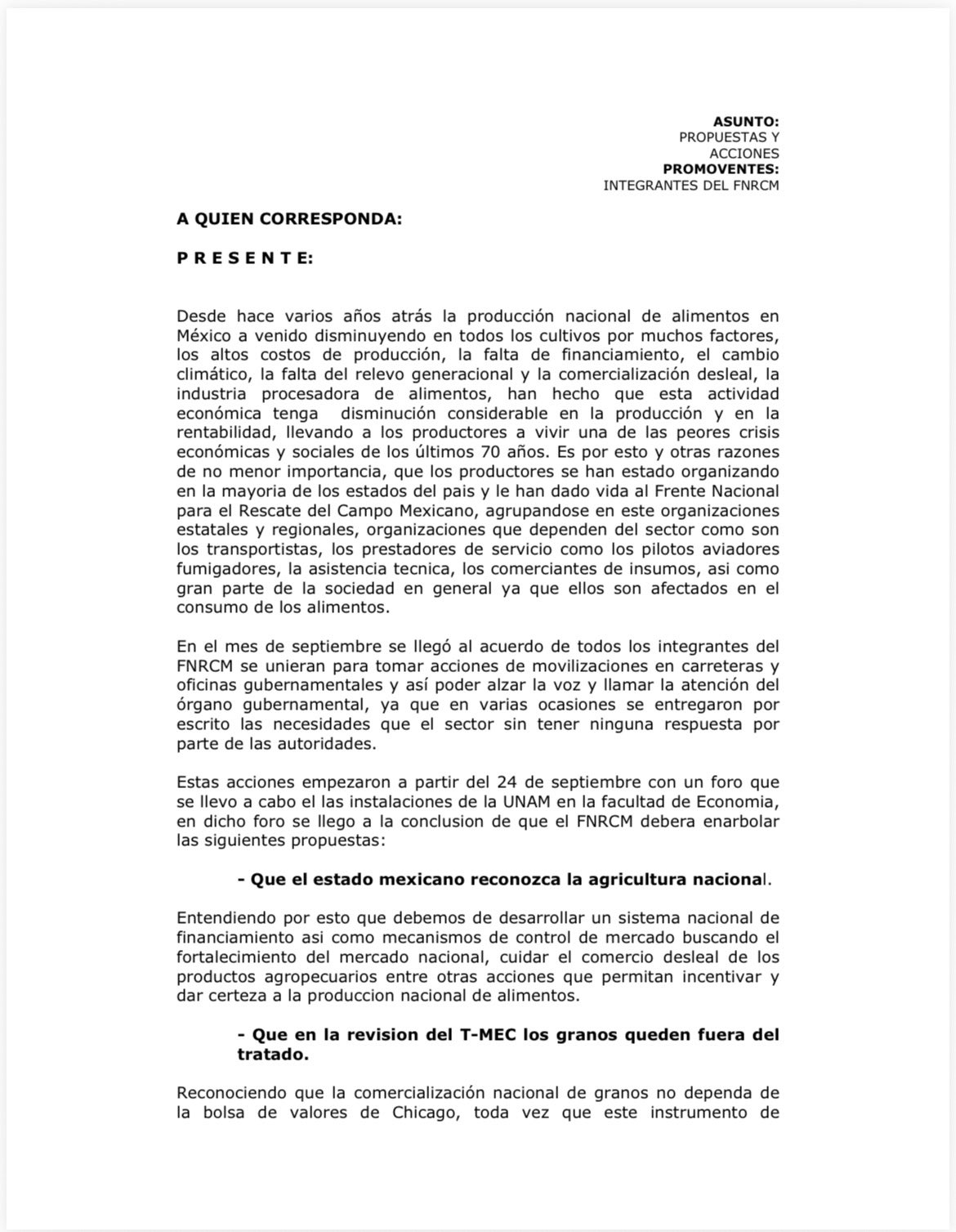 – Que los granos queden fuera del T-MEC.