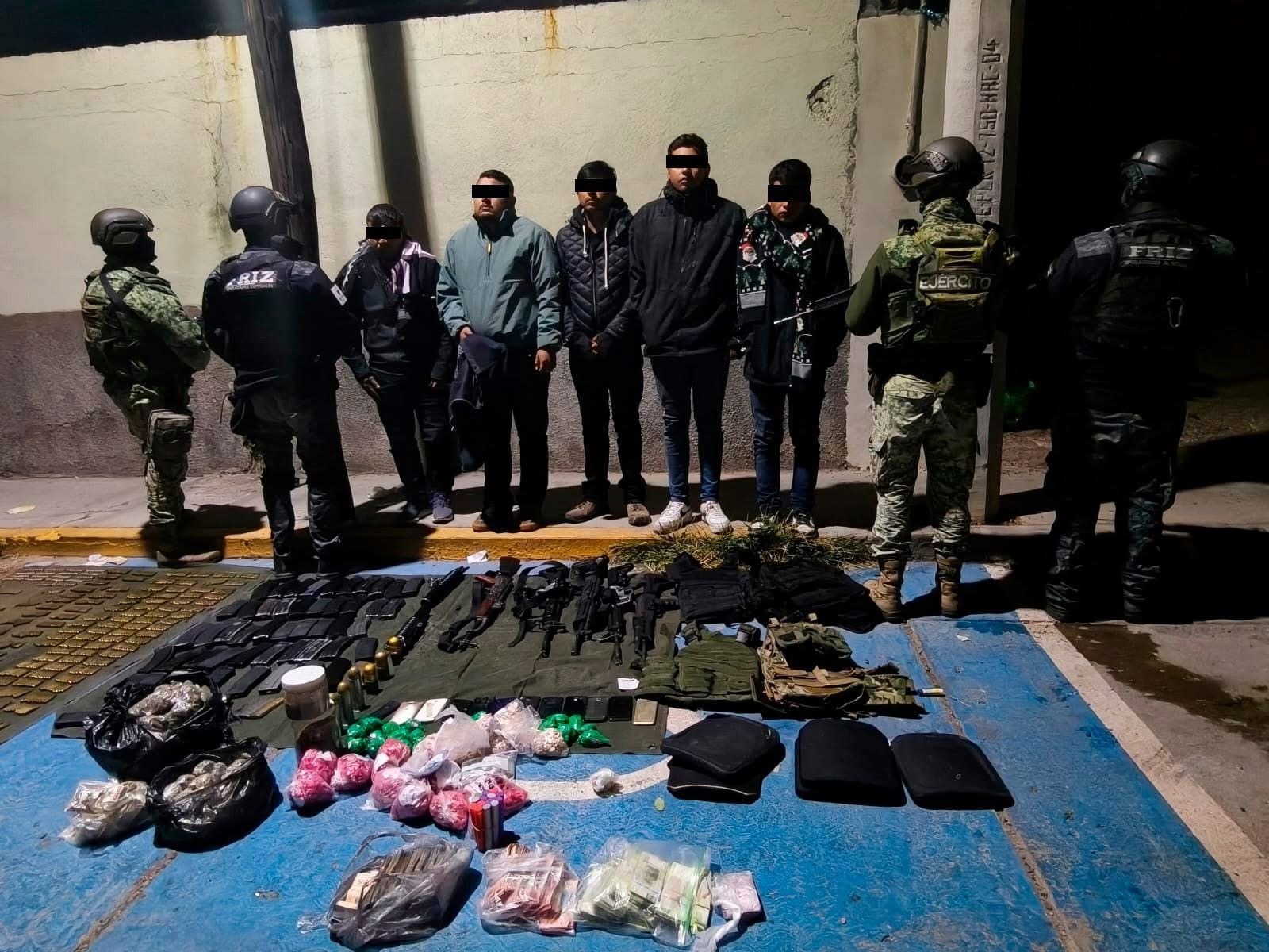 Cae peligrosa célula delictiva en Jalpa: aseguraron $636 mil, armas, drogas y equipo táctico