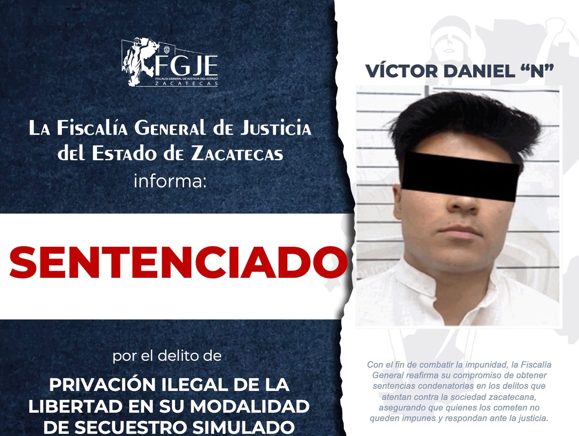 La Fiscalía General de Justicia del Estado de Zacatecas (FGJEZ), a través de la Unidad de Investigación y Litigación, obtuvo una sentencia condenatoria en contra de Víctor Daniel “N”, declarado coautor material del delito de privación ilegal de la libertad en su modalidad de secuestro simulado, en perjuicio de dos personas.