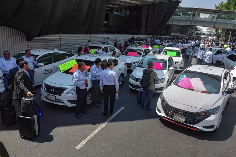 Bloquean taxistas Terminal 2 en rechazo a las apps de transporte