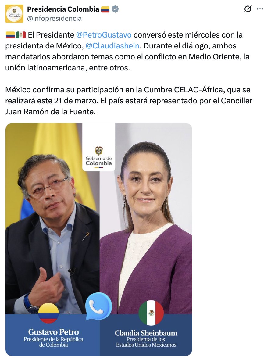 La presidenta Claudia Sheinbaum conversó telefónicamente con su homólogo colombiano, Gustavo Petro.