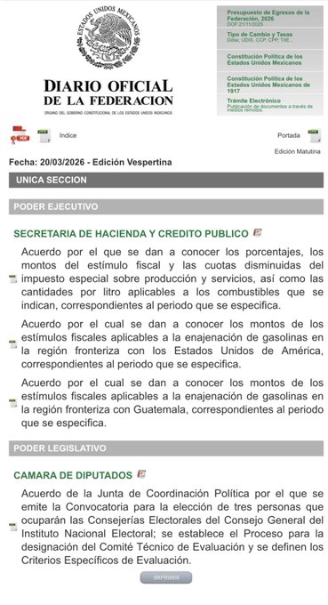 A través del Diario Oficial de la Federación, la SHCP publicó el decreto que fija los porcentajes de subsidio, con lo que se reduce el impuesto que pagan los consumidores por cada litro de combustible.