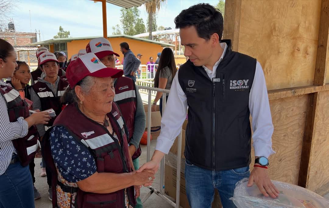 En representación del Gobernador David Monreal Ávila, el Secretario General de Gobierno, Rodrigo Reyes Mugüerza, entregó apoyos del programa Corazón Contento a familias de la comunidad Julián Adame, como parte de la Agenda del Bienestar.