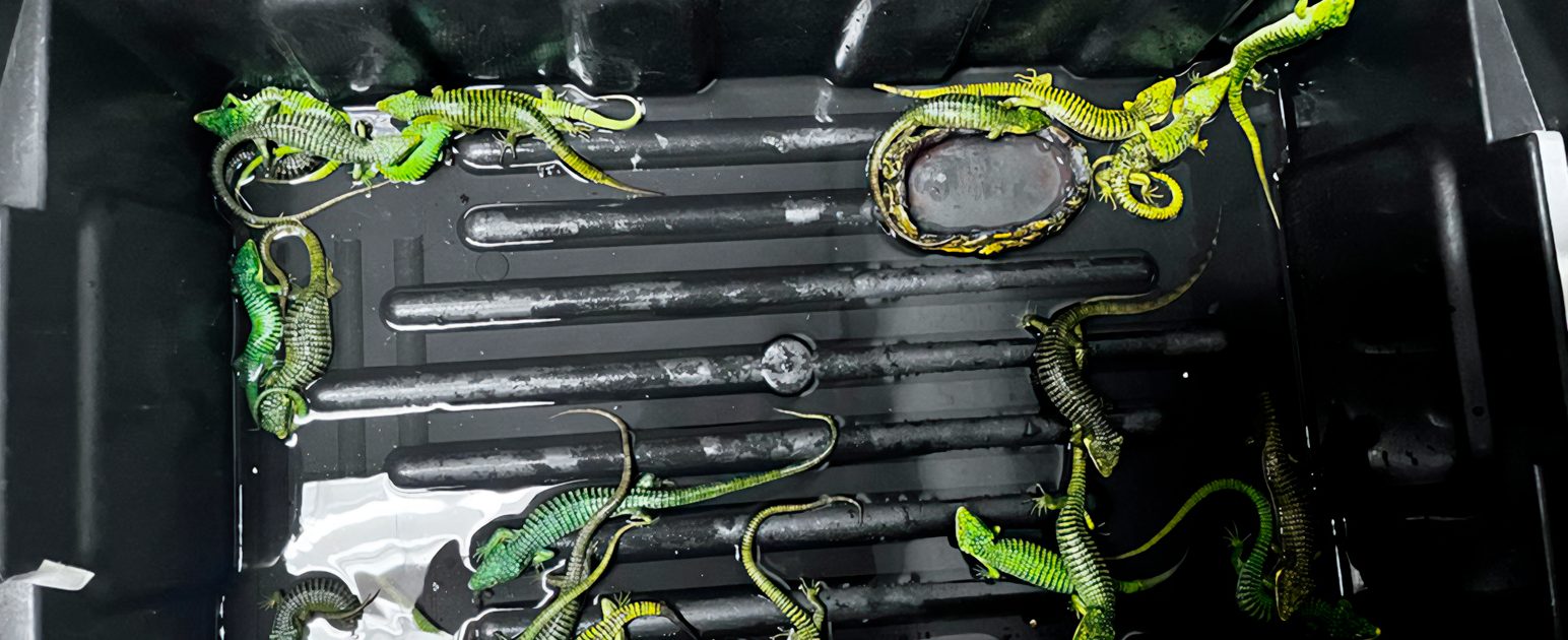 Durante la inspección, se confirmó que los animales —algunos de ellos visiblemente deteriorados— no contaban con documentación de origen legal ni autorización de exportación de la Secretaría de Medio Ambiente y Recursos Naturales (Semarnat). Los ejemplares, pertenecientes a géneros como Abronia y Phrynosoma, están incluidos en el Apéndice II de la Convención CITES, que regula estrictamente su comercio internacional.