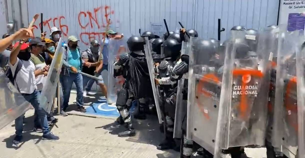 Maestros se enfrentan con Guardia Nacional en protesta en Chilpancingo