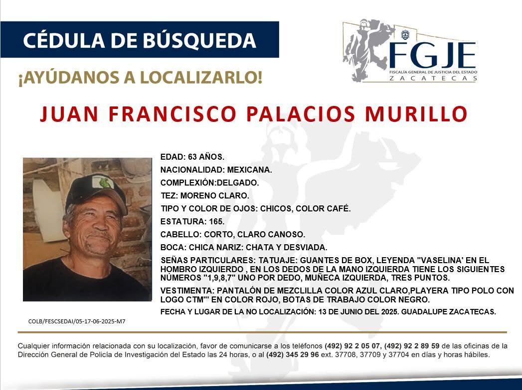 Juan Francisco Palacios Murillo, dirigente del gremio de la construcción afiliado a la CTM en Zacatecas, fue víctima de un secuestro, así lo confirmó la Secretaría General de Gobierno. Rodrigo Reyes Mugüerza, titular de esta dependencia, informó que desde el momento del reporte se activaron los protocolos de búsqueda, aunque hasta ahora no se ha logrado su localización.