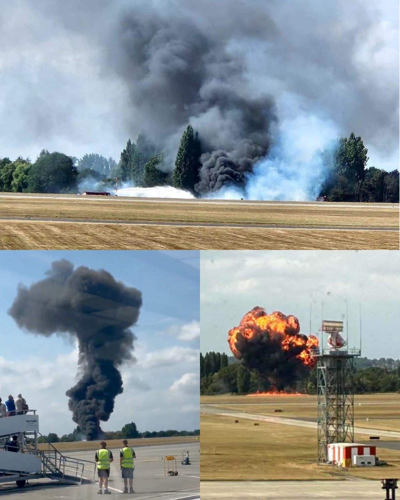 Según testigos, la aeronave —de unos 12 metros de largo— se precipitó de cabeza al suelo apenas segundos después de despegar. “Vi una gran bola de fuego”, relató John Johnson, quien presenció el siniestro junto a su familia. Imágenes difundidas en redes sociales muestran columnas de humo negro saliendo del lugar del impacto.